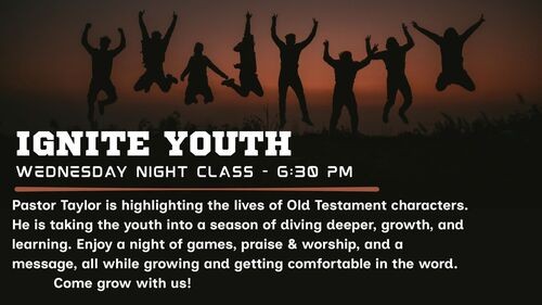 Pastor Taylor is highlighting the lives of Old Testament characters, such as Daniel, Samson, and others. He is taking the youth into a season of diving deeper, growth, and learning. They do games, praise & worship, and a message, all while growing and getting comfortable in the word. Class begins at 6:30 on Wednesday Nights. Come grow with us!