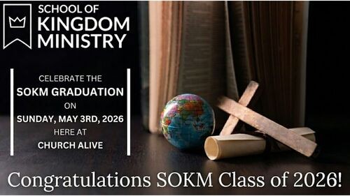 Please help us celebrate our newest class of SoKM Graduates! Their graduation ceremony will take place on Sunday, May 3rd, 2026, here at Church Alive. Congratulations SoKM 2026!