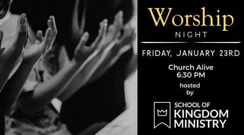 The School of Kingdom Ministry will be hosting a Night of Worship on Friday, January 23rd at 6:30 PM here at the church. Everyone is invited!